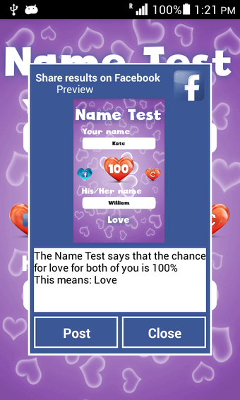 Name Love Test - Prank App é um aplicativo exclusivo que permite calcular a compatibilidade de seus nomes. Este teste é baseado no trabalho de um famoso pesquisador, Dr. John Grinder. O teste usa uma combinação de letras e números para calcular a porcentagem de compatibilidade. Isso é feito usando os mesmos nomes das pessoas de seu interesse, o que o torna realmente preciso.